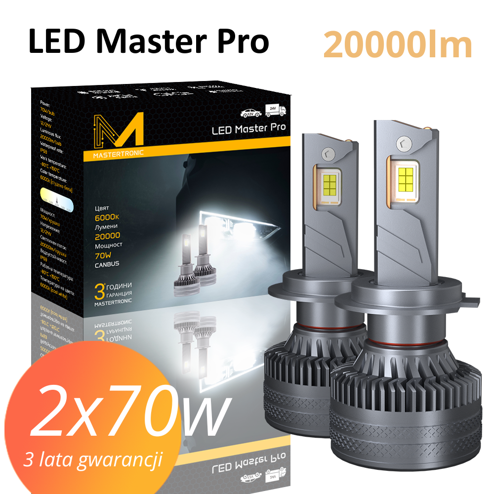 LED Master Pro - LED крушки MASTERTRONIC 12/24V, 6000K, 140W, H7