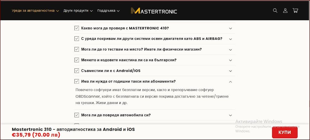 Mastertronic 310 - автодиагностика за Android и iOS